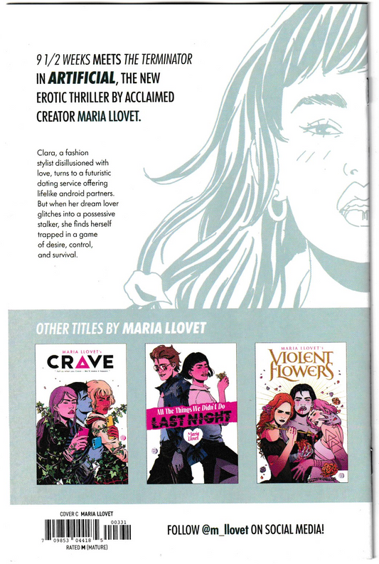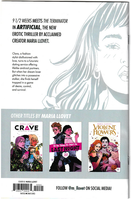 Vegas Comic Kingdom at VegasComics.com – Your premier destination for pre-ordering Artificial (2025) comics with our exclusive VCK Pre-Order Discount, perfect for collectors and fans of provocative sci-fi thrillers! Save off the cover price when you pre-order this gripping four-issue limited series from Image Comics, launched September 3, 2025. Written and illustrated by Maria Llovet (Crave, Violent Flowers), with colors by Llovet and lettering by AndWorld Design, Artificial follows Clara, a fashion stylist disillusioned with love, who turns to a futuristic dating service offering lifelike android partners. When her dream lover glitches into a possessive stalker, Clara is trapped in a deadly game of desire, control, and survival, blending 9 ½ Weeks eroticism with The Terminator’s tension. Pre-order signed copies with Certificates of Authenticity (COA) for issues #1–#4 (through December 2025), including high-demand variants like Cover A (Llovet, $3.99), Cover B (1:15 Llovet, #1; Jess Orellana, #2), and exclusive foil covers. Issue #1 sold out multiple printings, with strong buzz from Image Comics September 2025 Solicitations and an 8.5/10 critic rating, offering immense collectible and investment potential. Combine with our FREE SHIPPING on orders over $25 for savings better than owning your own comic store! All pre-orders are backed by the VCK Grading Guarantee, ensuring top-quality condition (9.2 or better). Visit VegasComics.com to reserve your Artificial comics and dive into this seductive, high-stakes saga! Act fast—limited quantities available!