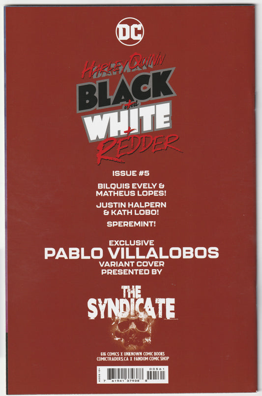 Harley Quinn: Black + White + Redder #5 Pablo Villalobos Virgin Variant Cover Signed with Heart Remark and COA – DC Comics 2023 (NM/NM+)