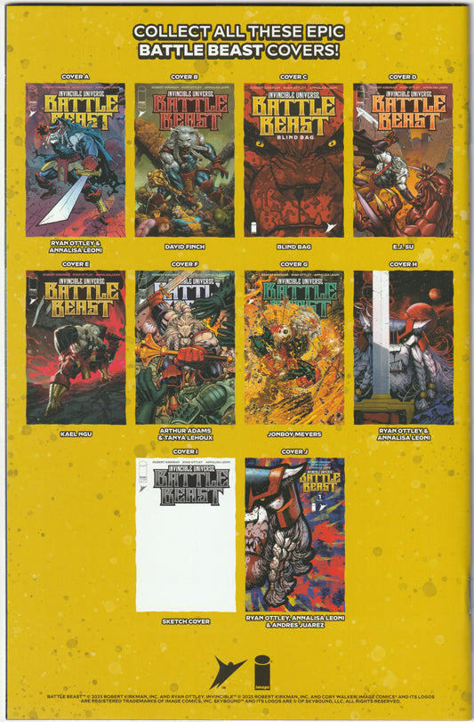 Invincible Universe: Battle Beast #1C – Second Print, Cover C Ryan Sook 1:10 Incentive Variant, Signed by Ryan Ottley (NM/NM+)