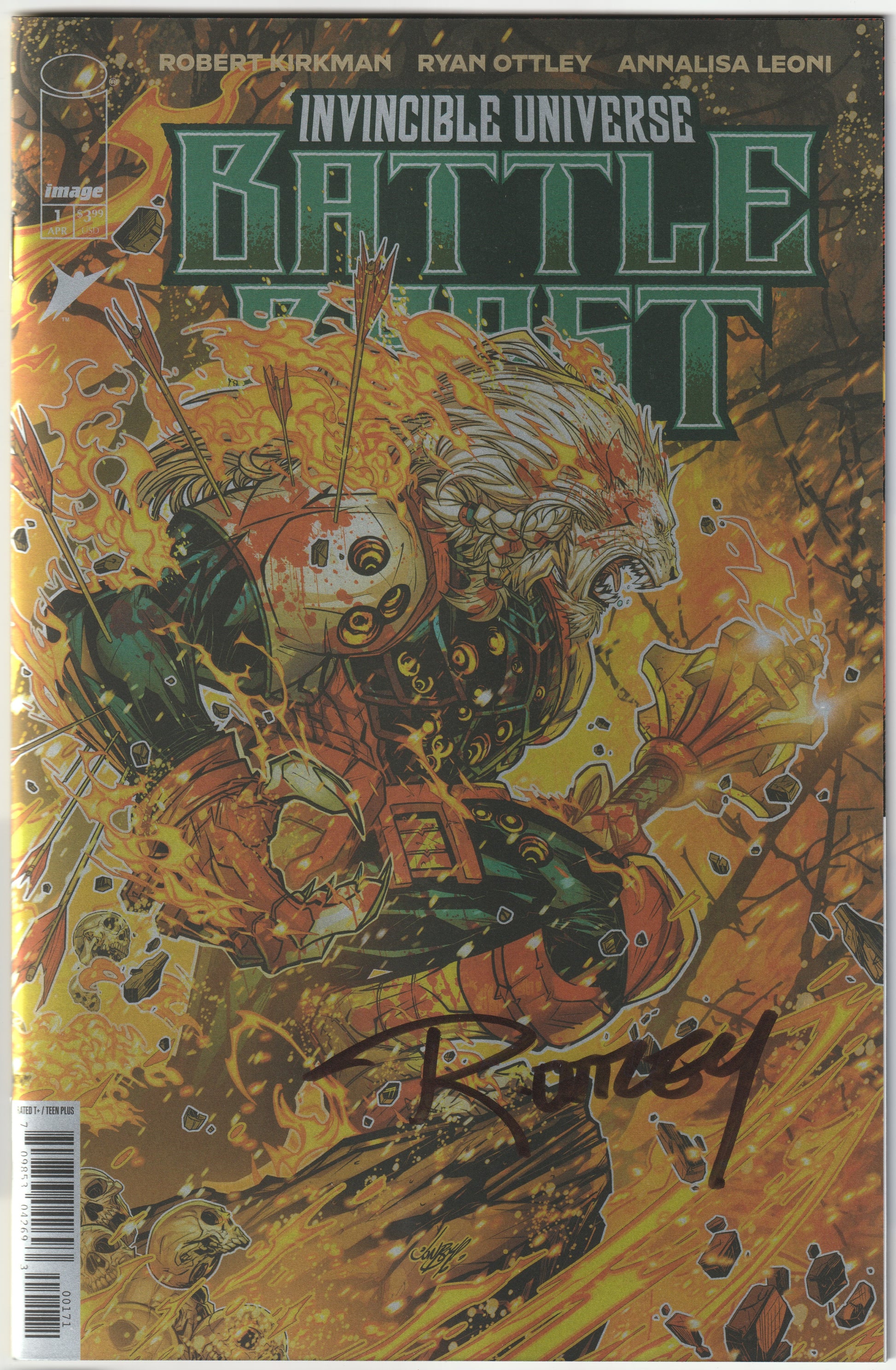 Invincible Universe: Battle Beast #1G – First Print, Jonboy Meyers 1:100 Incentive Holo Foil Variant Cover G, Signed by Ryan Ottley (NM/NM+)