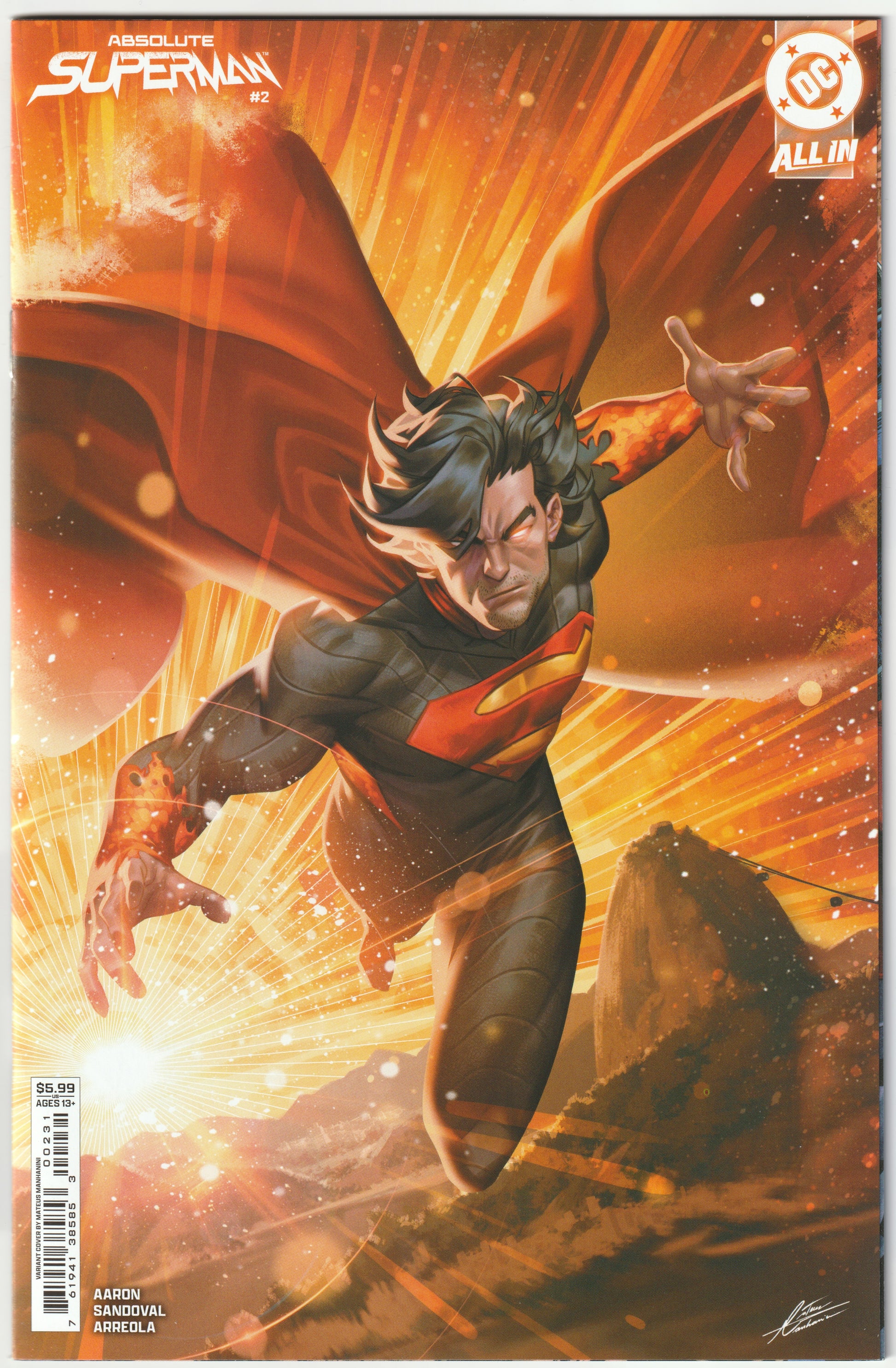 Absolute Superman #2 (2024) Mateus Manhanini Card Stock Variant Cover – A Collector’s GemJoin the epic reimagining of the Man of Steel with Absolute Superman #2 (2024) Mateus Manhanini Card Stock Variant Cover, available exclusively at VegasComics.com. Written by Jason Aaron and illustrated by Rafa Sandoval, this issue deepens the Absolute Universe’s saga of Clark Kent as a fugitive from Krypton’s Labor Guild. Mateus Manhanini’s vibrant, expressive variant cover, praised on X for its bold artistry, makes this a must-have for collectors and investors.Key Appearances