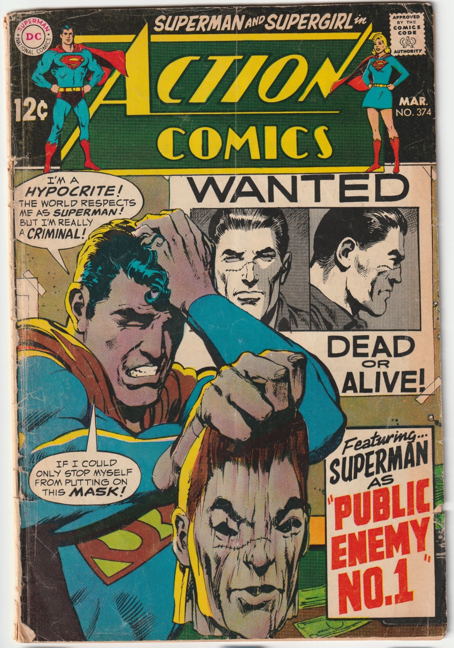 Action Comics #374 (March 1969) – A Silver Age Gem at VegasComics.comSecure Action Comics #374, featuring "Alias Super-Thief!" and "No Mercy for Supergirl!" at VegasComics.com. This Silver Age DC classic is a collector’s treasure and a smart investment, packed with gripping Superman and Supergirl stories and strong value potential.Key Appearances: In "Alias Super-Thief!" (Leo Dorfman, Curt Swan, Jack Abel), Superman, suffering from amnesia, believes he’s Jud Blake, a notorious criminal known as Super-Thief. He temporarily takes Blake’s place, grappling with fears that his criminal identity might be his true self, creating a thrilling psychological drama. In "No Mercy for Supergirl!" (Otto Binder, Kurt Schaffenberger), Supergirl seeks a scientist’s disease research for the World Health Organization but is captured by the Avenger, an alien from Sarkon. Her minor acts—cutting a flower and killing a butterfly—violate Sarkon’s strict no-kill laws, leading to her sentencing to the 5th Continuum, from which she must escape.