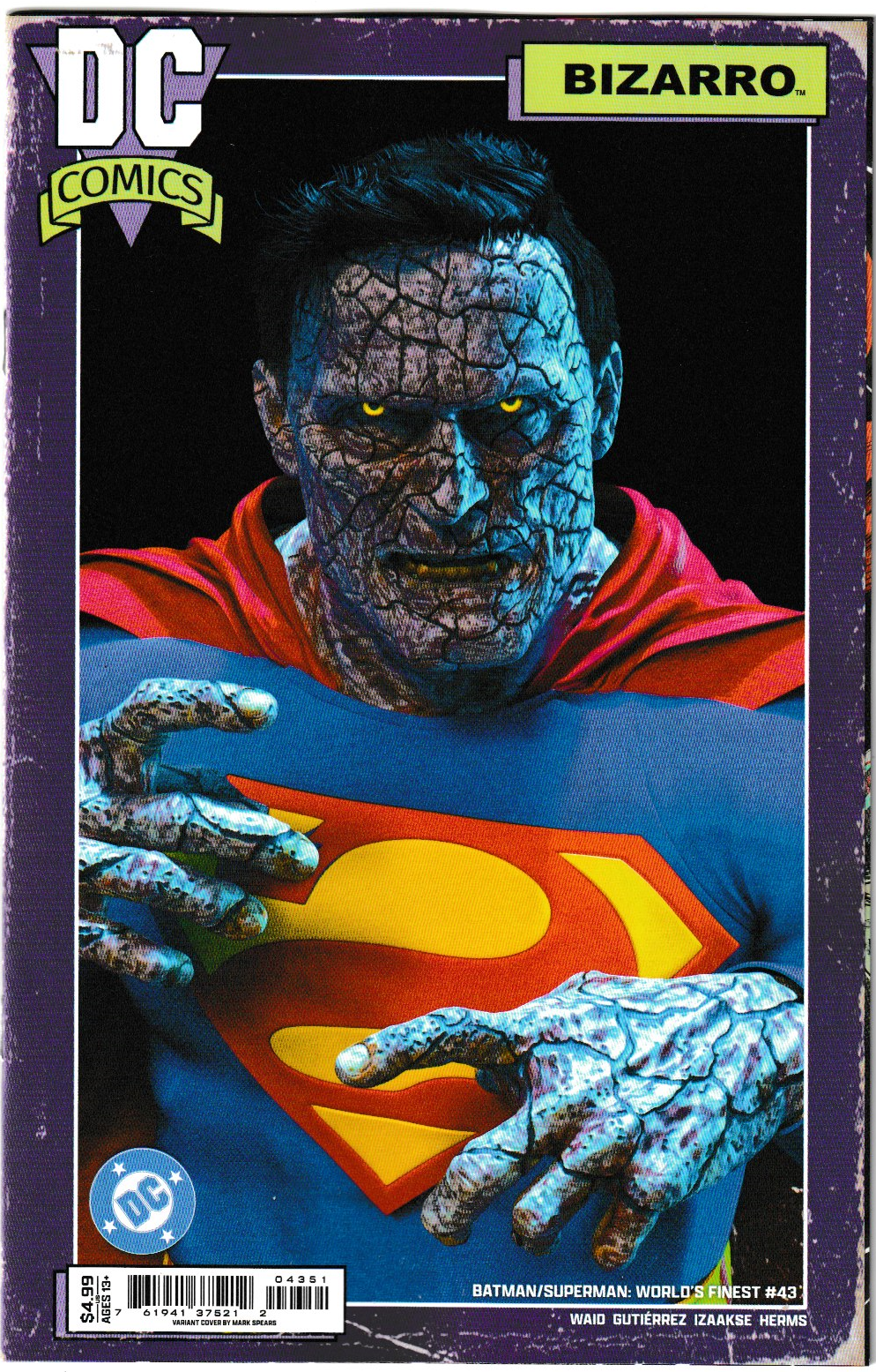BATMAN/SUPERMAN: WORLD'S FINEST #43 (2025) Cover E Mark Spears Card Stock Variant ListingIntroduction: Unite the icons in Batman/Superman: World's Finest #43 (2025) Cover E Mark Spears Card Stock Variant, written by Mark Waid and illustrated by Sean Izaakse, published by DC Comics! Released on September 17, 2025, this issue pushes Bizarro World to the brink as the planet morphs uncontrollably, forcing Superman and Batman into a devastating war against each other. With the universe hanging in the balance, they grapple with a haunting question: Are Bizarros mere abominations without souls, or beings deserving of salvation? Blending epic clashes and moral dilemmas, this chapter delivers universe-shaking drama that's essential for World's Finest fans.Cover Details: Mark Spears’ Card Stock Variant is a warped masterpiece, depicting a fractured Bizarro World landscape with Superman and Batman locked in a brutal, mirrored clash against grotesque, crumbling Bizarro hordes. Spears’ bold, surreal style—known from Catwoman and Harley Quinn—infuses this limited-run premium card stock cover with chaotic intensity and distorted heroism, making it a collector’s must-have for its mind-bending visuals and ties to the issue’s existential horror.Key Appearances: Clark Kent (Superman), Bruce Wayne (Batman), Bizarro, and the Bizarro World inhabitants drive the moral conflict, with ties to the DC Trinity and multiversal threats. Set in Earth-0 (Prime Earth) with Bizarro World anomalies, this issue connects to World's Finest, Action Comics, and DC All In, with potential links to the DCU’s Superman (2025) and The Batman Part II (2026), boosting its cinematic relevance.Current Fair Market Value (FMV): Raw copies of the Spears Card Stock Variant are fetching $8-$12 on eBay, driven by Spears’ rising popularity and the variant’s limited release. CGC 9.8 slabs are estimated at $50-$70, fueled by Waid’s acclaimed run and the series’ strong sales (over 80,000 units for recent issues). Pre-sale data shows robust demand for this high-profile cover.Value Projections: With the comic market projected to grow 7.5% annually to $26.75 billion by 2032, raw copies could hit $15-$20 in 12-18 months, while CGC 9.8 slabs may reach $90-$120. These conservative estimates reflect Comic-Con buzz, the Bizarro arc’s hype, and potential DCU Superman/Batman tie-ins. A major film announcement could spike values further.Why Invest Now?: Spears’ surreal card stock cover, Waid’s gripping moral narrative, and Izaakse’s dynamic art make this variant a World's Finest standout. As the Bizarro crisis reshapes the Dynamic Duo amid DC’s cinematic surge, this issue’s value is poised to soar. Secure grading-ready copies from VegasComics.com to lock in this twisted epic before it warps higher!
