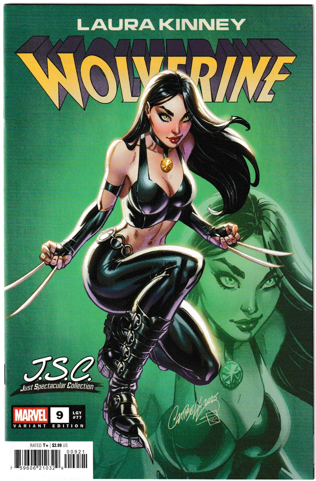 Laura Kinney: Wolverine #9 J. Scott Campbell Just Spectacular Collection Variant (Marvel Comics, 2025)Slash into action with Laura Kinney: Wolverine #9 J. Scott Campbell Just Spectacular Collection Variant, a fierce collectible from VegasComics.com! Released August 13, 2025, this 32-page issue (Legacy #78), written by Erica Schultz and illustrated by Giada Belviso, features key appearances by Laura Kinney (Wolverine), Gabby Kinney (Honey Badger), and Xarus, the Son of Dracula. In this thrilling chapter, Gabby reunites with Laura, bringing trouble that threatens to tear the Kinney sisters apart, while Xarus’s arrival escalates the danger. Campbell’s dynamic cover, showcasing Laura’s intensity, makes this a standout variant.Current Fair Market Value: Retailing at $3.99 (UPC: 75960621032900921), this variant is listed at $3.19-$5.99 on eBay, with NM copies averaging $14-$16 due to Campbell’s iconic art and fan demand.