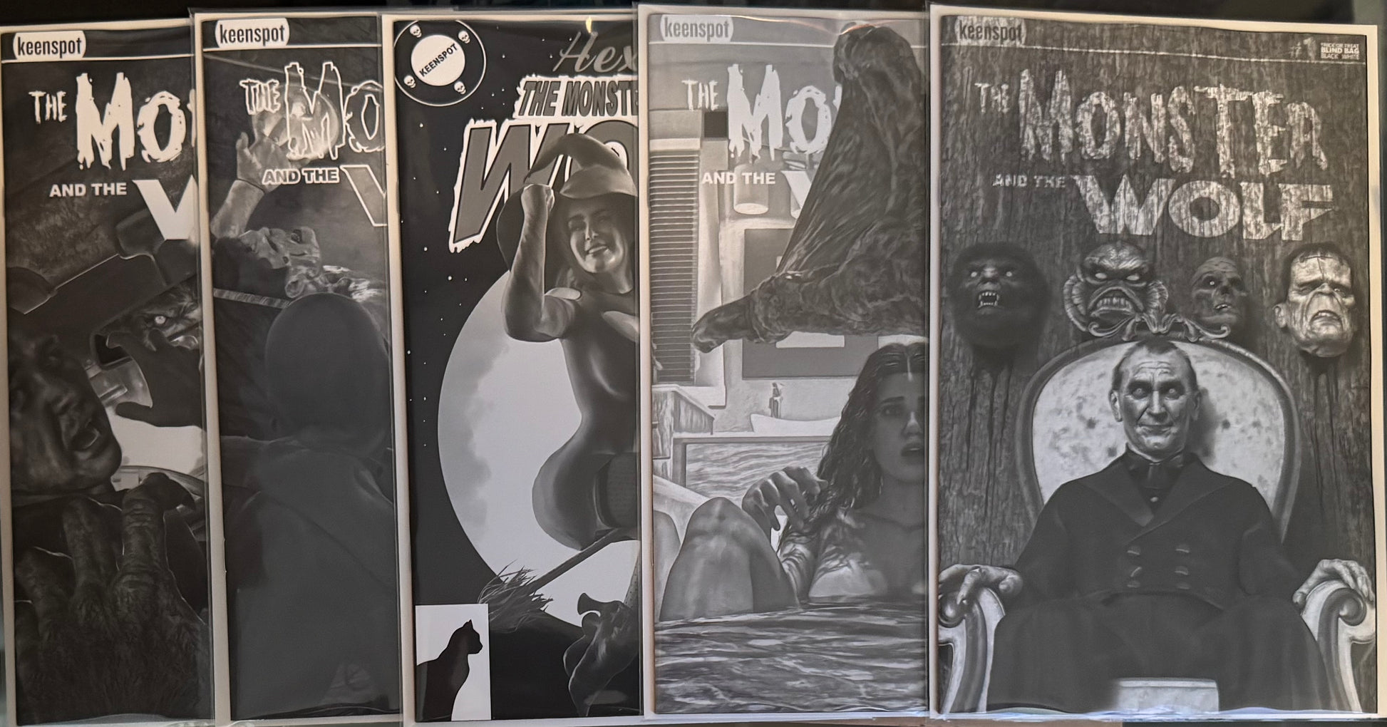 Mark Spears Monsters: The Monster & The Wolf #1 Black and White Cover Bundle - Complete Set A61-A65 Black and White Variant - Print Run of 500 + Black and White Sketch Covers (Lot of 7 Books)