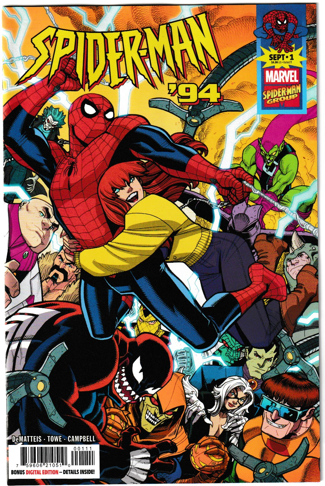 Spider-Man '94 #1 Cover A (Jim Towe) NM/NM+ – VegasComics.com ExclusiveSwing into nostalgia with Spider-Man '94 #1 Cover A by Jim Towe, a 2025 Marvel Comics gem! Written by J.M. DeMatteis with art by Jim Towe, this 32-page issue (releasing September 3, 2025) continues the iconic Spider-Man: The Animated Series. Secure this NM/NM+ first print at VegasComics.com!Key Appearances: Features Peter Parker (Spider-Man) and Mary Jane Watson, resolving the 1998 cliffhanger where Madame Web promised to help find MJ across the Multiverse. Introduces Morlun and The Jackal (Kaine) to this animated universe, delivering high-stakes action and shocking twists that set up a thrilling new arc.Current Fair Market Value: Retailing at $4.99, NM/NM+ Cover A copies are pre-selling at $8-$15 on eBay, driven by Towe’s vibrant art and the series’ nostalgic hype (8.5/10 early buzz). CGC 9.8 graded copies are projected at $50-$80, reflecting strong demand and the Animated Series fanbase.Projected Fair Market Value: Marvel’s 2025 SDCC buzz, Spider-Man 4 movie hype (July 2026), and the series’ cult appeal fuel growth. Morlun and Kaine’s debuts could push CGC 9.8 copies to $90-$140 within 12-18 months. A planned trade paperback (late 2025) and potential Disney+ tie-ins may further boost value.Why Buy from VegasComics.com? Secure this NM/NM+ Towe cover with our VCK Grading Guarantee and free shipping on orders over $25. Ideal for investors banking on Spider-Man '94’s nostalgic surge or fans craving a Multiversal adventure. Pre-order now to grab this vibrant collectible before it swings away!