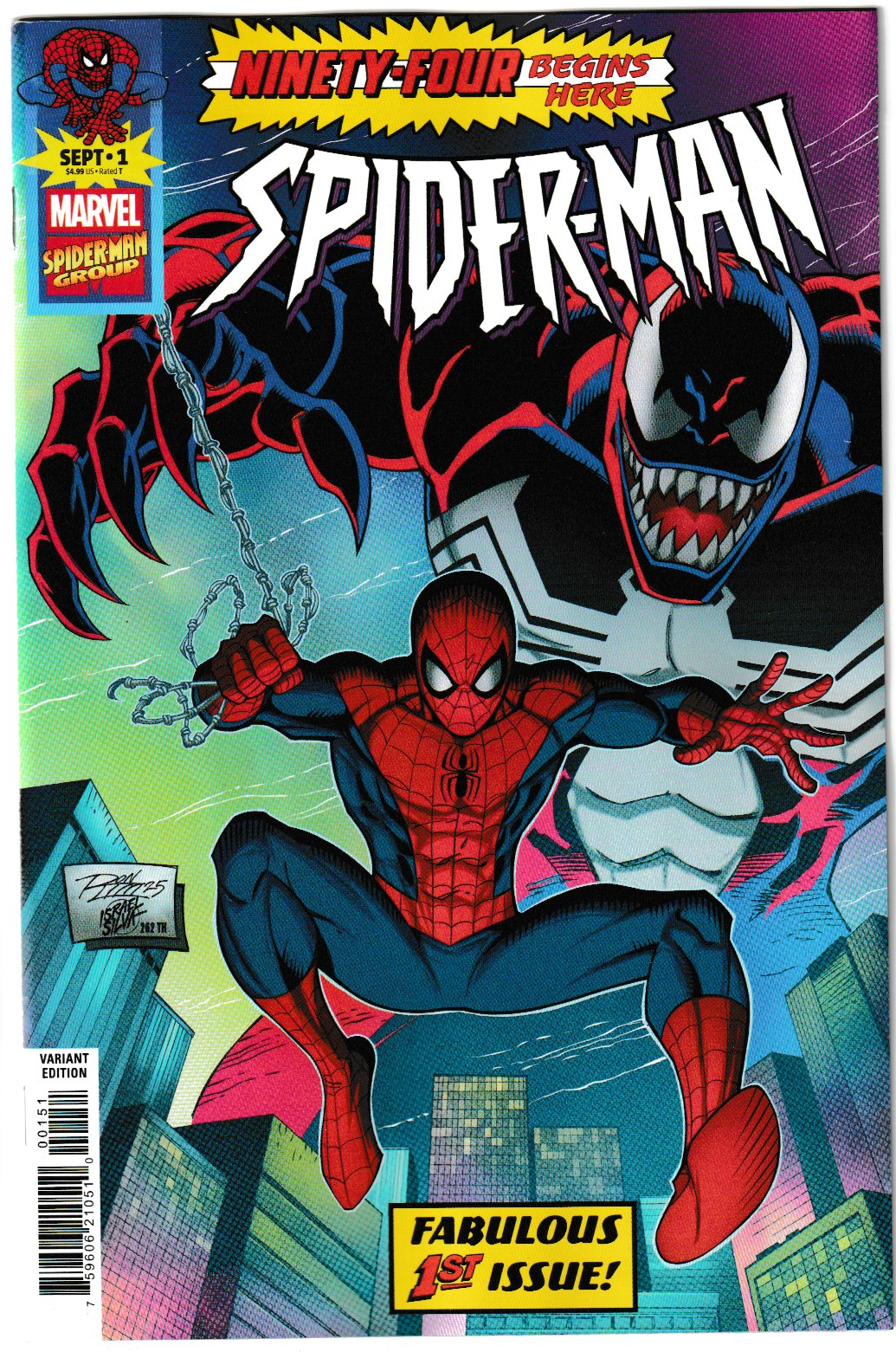 Spider-Man '94 #1 Ron Lim Variant NM/NM+ – VegasComics.com ExclusiveSwing into the nostalgic Spider-Man '94 #1 Ron Lim Variant, a 2025 Marvel Comics hit! Written by J.M. DeMatteis with art by Jim Towe, this 32-page issue (releasing September 3, 2025) continues the iconic Spider-Man: The Animated Series. Secure this NM/NM+ limited variant at VegasComics.comKey Appearances: Features Peter Parker (Spider-Man) and Mary Jane Watson, resolving the 1998 cliffhanger where Madame Web promised to help find MJ across the Multiverse. The issue introduces two major Spider-Man comic villains—Morlun and The Jackal—to this animated universe, delivering twists and high-stakes action.Current Fair Market Value: Retailing at $4.99 (card stock), NM/NM+ Ron Lim variant copies are pre-selling at $10-$20 on eBay, driven by Lim’s iconic art and the series’ hype (8.5/10 early buzz). CGC 9.8 graded copies are projected at $60-$90, reflecting the variant’s limited run and Animated Series fanbase.