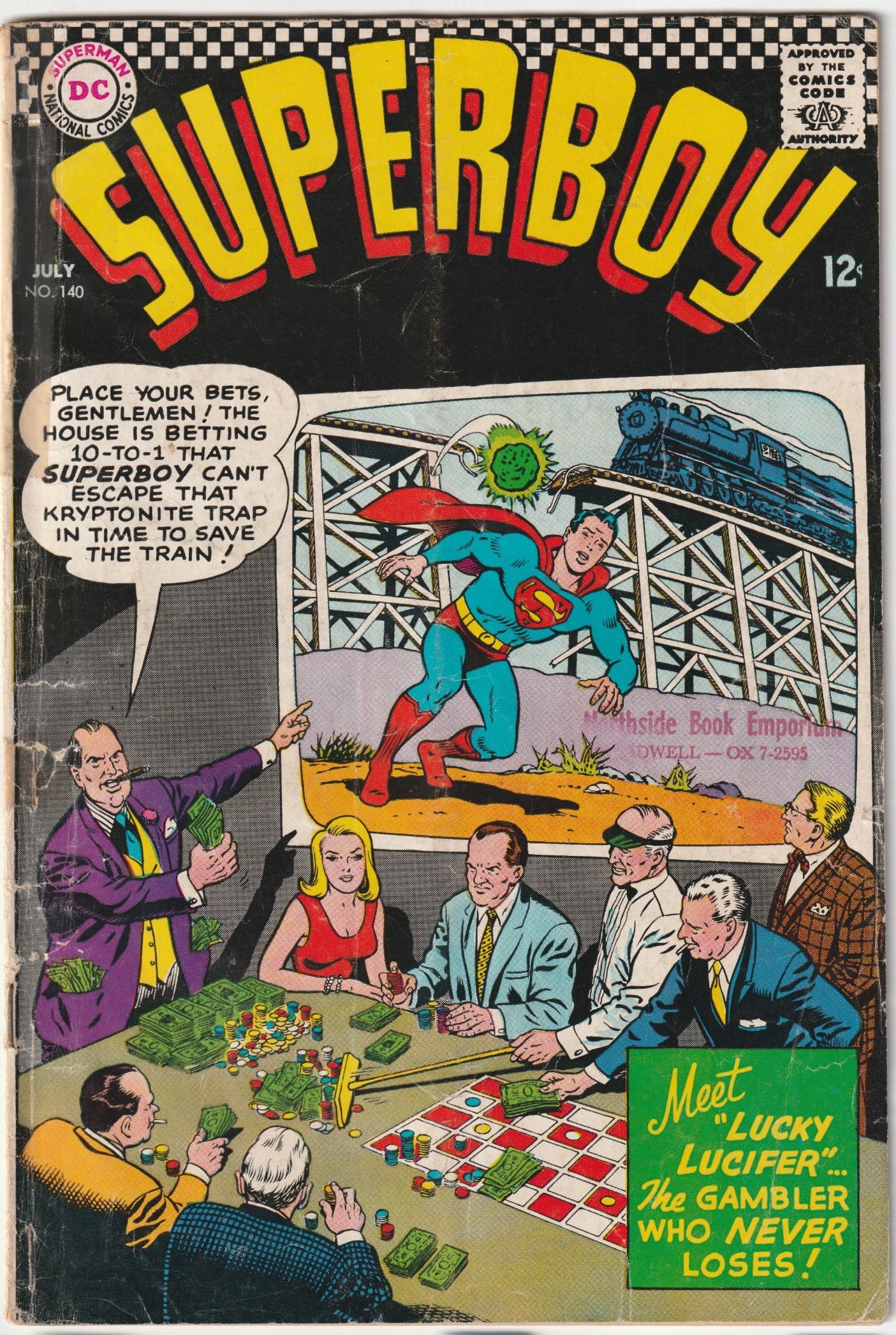 Superboy Vol 1 #140 (July 1967), by Leo Dorfman with George Papp’s art, is an action-packed Silver Age issue with two stories. In “The Wizard of Odds!,” gangster and gambling mastermind Lucifer Chancel, aka The Gambler, sets up in Smallville, orchestrating high-stakes betting games based on Superboy’s heroic actions. With his gang—Blackie, Maxie, and The Professor—Chancel plots to destroy the Boy of Steel using Green Kryptonite and a Superboy Robot, but Superboy outwits their schemes, shutting down the gambling ring. In “Beware the Mad Dog of Steel!,” Superboy and Krypto discover a Kryptonian space capsule on the ocean floor containing germ vials. One vial breaks, infecting Krypto with Kryptonian rabies, which he passes to Superboy via a bite, threatening death within 24 hours. Superboy has Krypto break an antidote vial, curing them both, with Jor-El’s foresight revealed in flashbacks.