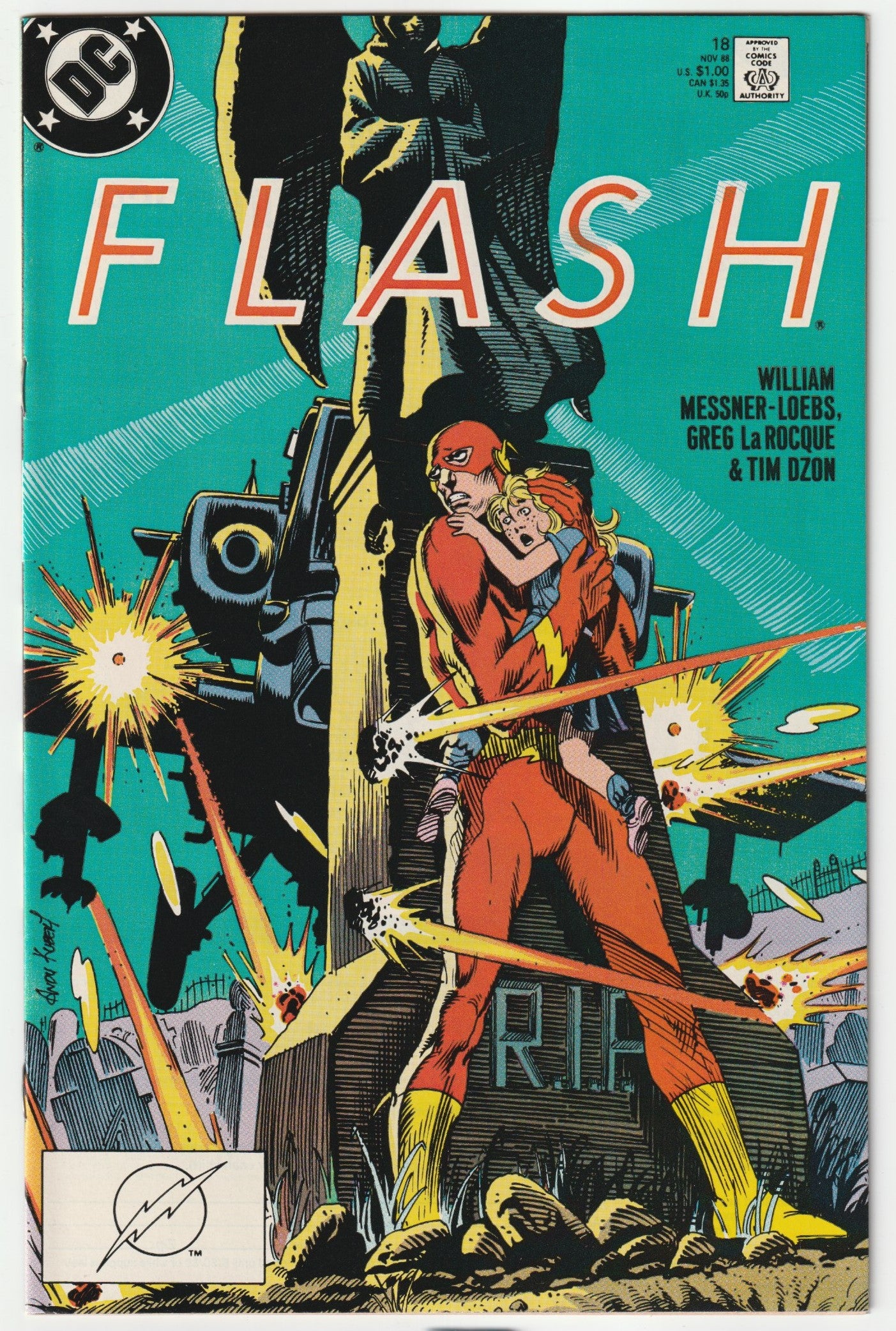 Sprint into the Speedster’s saga with The Flash, Vol. 2 #18, a high-octane chapter from Wally West’s early reign as the Scarlet Speedster! Released in November 1988, this issue rockets Wally through a thrilling blend of high-speed heroics and personal stakes, anchoring his role as the Flash in the post-Crisis on Infinite Earths DC Universe. William Messner-Loebs’ sharp, character-rich script pairs with Greg LaRocque’s bold, kinetic pencils to deliver a story that buzzes with energy and heart. With its striking cover and early-series significance, Flash, Vol. 2 #18 is a Bronze-to-Modern Age standout for fans and collectors tracing Wally’s rise to prominence.